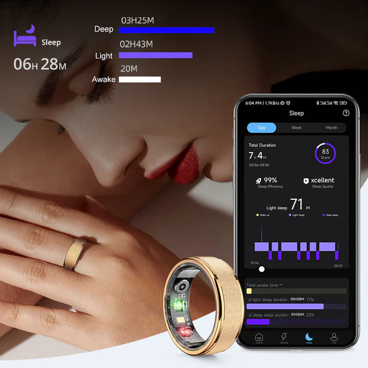 As you sleep, the EONRING™ Elegance automatically tracks your sleep quality and generates a detailed report, helping you develop healthier sleep habits for improved rest and well-being
