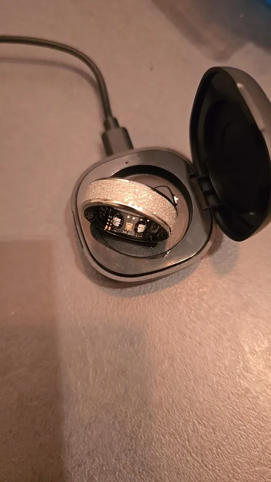 The ring comes with a convenient charging case, allowing you to charge it on the go. To charge, simply place the ring in the case. The case itself is charged with the included USB cable, making the process simple and convenient
