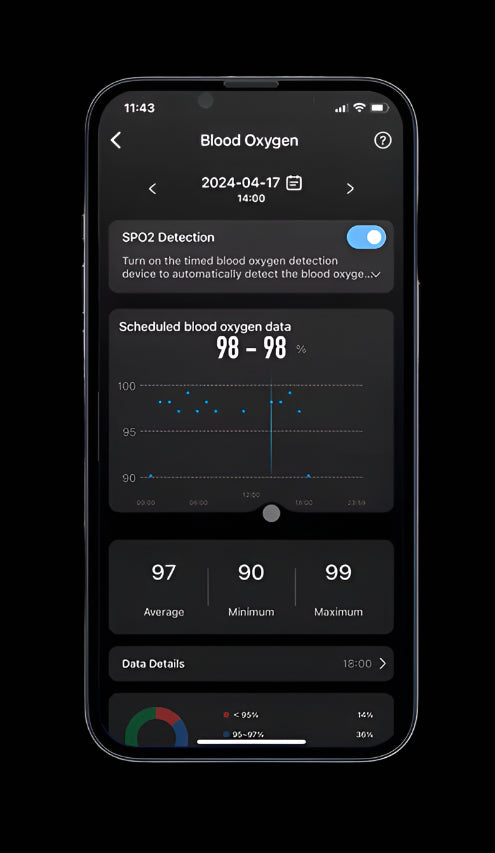 The EONRING™ Nova continuously tracks your blood oxygen levels (SpO2) with precision, providing real-time insights into your overall health. Stay informed and in control of your well-being, receiving valuable data that helps you monitor and optimize your health